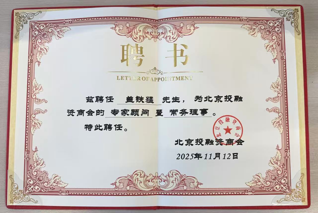 2025年11月12日,乾成律所創(chuàng)始合伙人蓋鐵猛律師正式獲聘為北京投融資商會(huì)專家顧問暨常務(wù)理事。這一聘任不僅是行業(yè)對(duì)蓋鐵猛律師專業(yè)能力與行業(yè)影響力的高度認(rèn)可,也為乾成在投融資服務(wù)領(lǐng)域的資源鏈接與專業(yè)賦能注入了新動(dòng)力。
